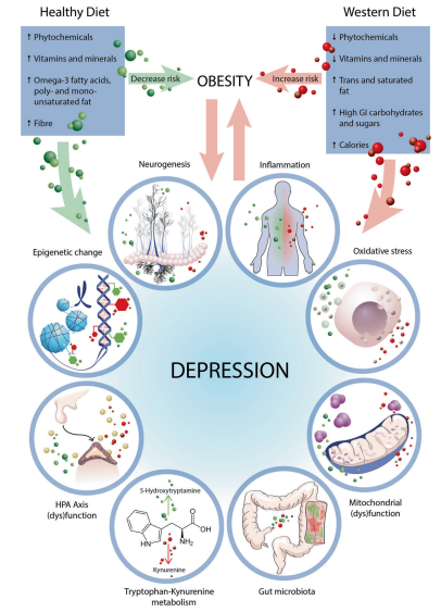 Marx, W., Lane, M., Hockey, M., Aslam, H., Berk, M., Walder, K., … Jacka, F. N. (2020). Diet and depression: exploring the biological mechanisms of action. Molecular Psychiatry. doi:10.1038/s41380-020-00925-x