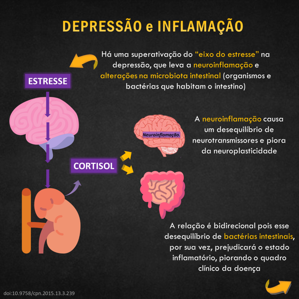 Um dos achados biológicos mais consistentes na depressão é sua associação às alterações no eixo HPA, com consequente aumento crônico do cortisol plasmático. A superativação dessa via eleva a inflamação, e esta, por sua vez, está ligada ao desenvolvimento e exacerbação dos sintomas depressivos. [2]